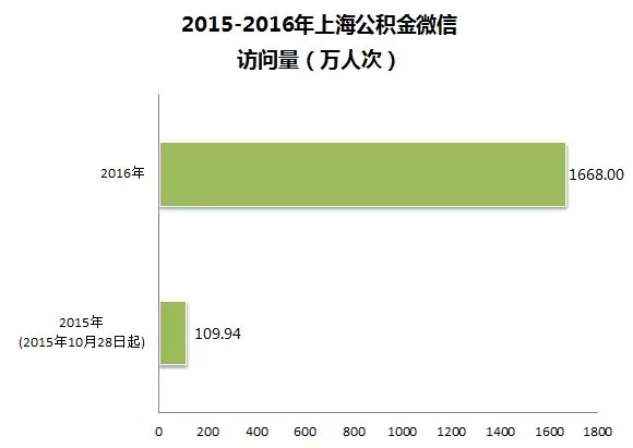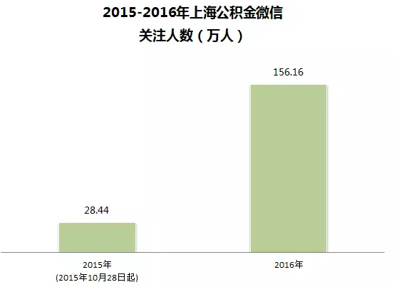 2.打造微信服务号新平台,让群众第一时间了解公积金惠民政策。上海公积金微信公众服务号2015年10月18日开通以来,已经发送各类惠民服务信息131条,政策解读23条,让广大群众及时了解和掌握最新服务信息和政策出台背景,得到了社会的高度关注,平均每篇访问量达到10万人次。并多次被上海发布、上海电视台、上海观察等公共媒体关注并转发。一年多来,公众号关注人数已突破156万人,2016年底较2015年底上升了4倍多;访问量1668万人次,2016年底较2015年底上升了14倍。已经第2次被评为中国最具影响力政务新媒体。