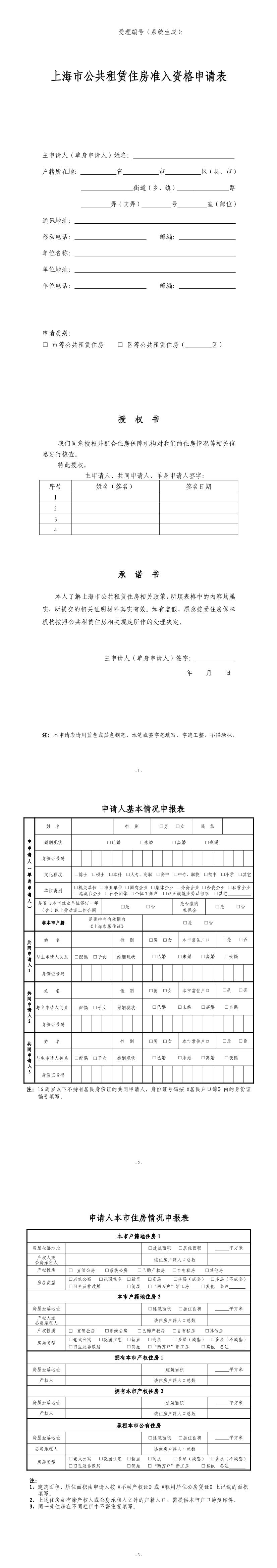 上海市公共租赁住房准入资格申请表(样张)