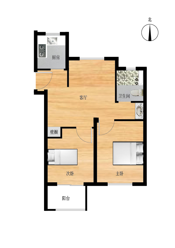 二室一厅房型平面效果(室内装修配置以实际情况为准)