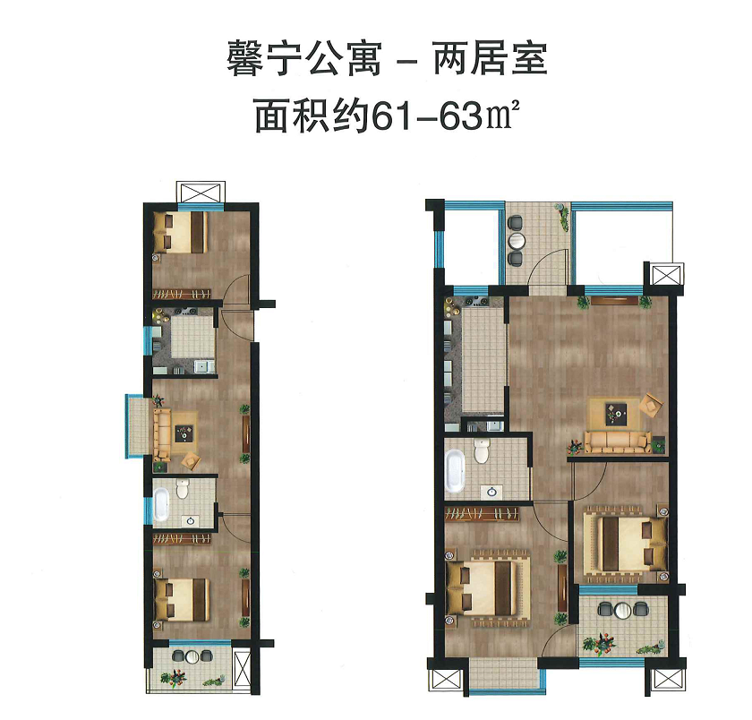 两居室房型平面效果(室内装修配置以实际情况为准)