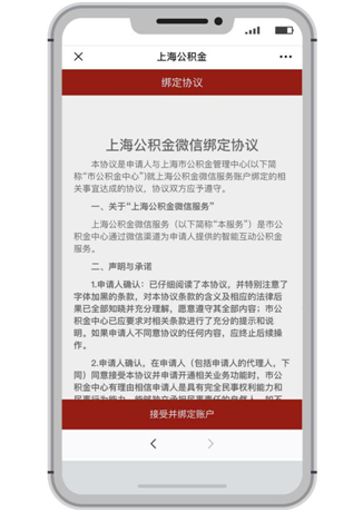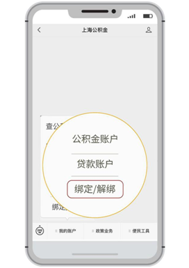第一步:关注上海公积金官方微信,通过下方菜单“我的账户”——“绑定/解绑”进入账户绑定页面