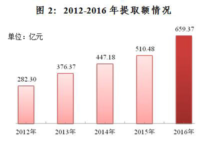 截至2016年底,提取总额3933.35亿元,同比增长20.14%。
