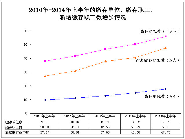 上半年,本市住房公积金缴存单位数、缴存职工数持续快速增长,反映出上海公积金制度覆盖面的持续扩大。近五年来上半年的缴存单位、缴存职工和新增职工数增长情况如下图: