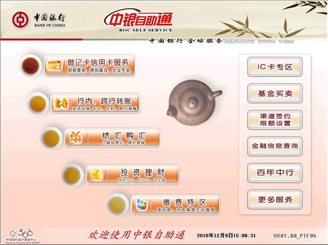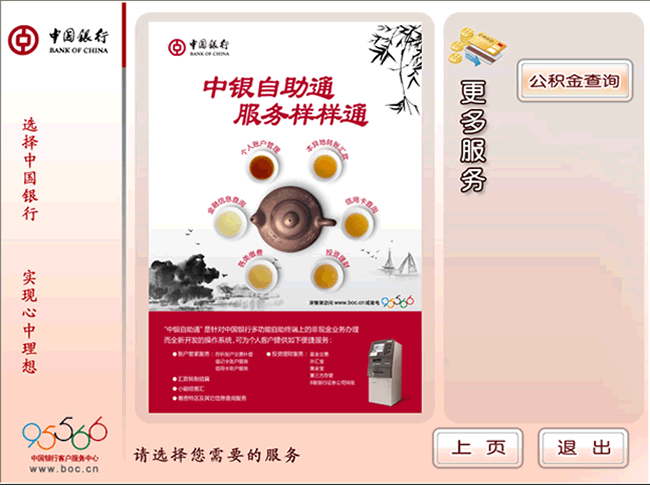 1、在中银自助通中插入中国银行银行卡,点击“更多服务”。