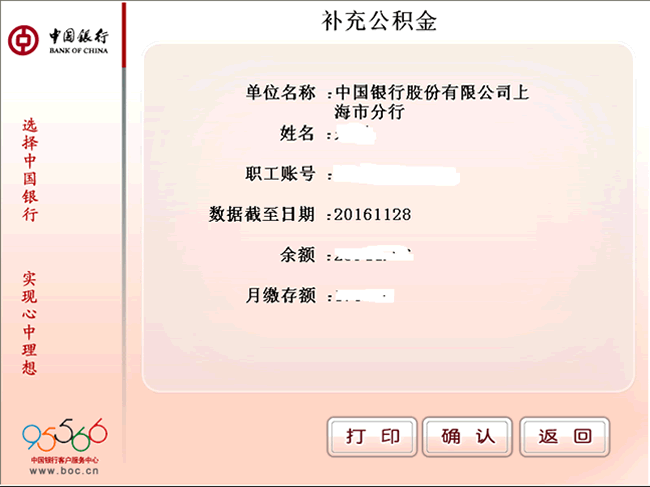 5、点击“补充公积金”,可查询个人补充公积金账户信息并可以打印。