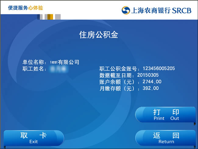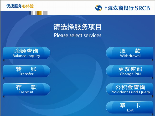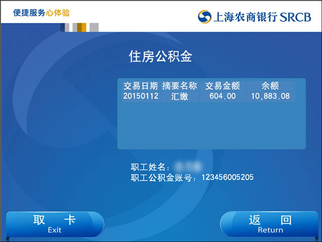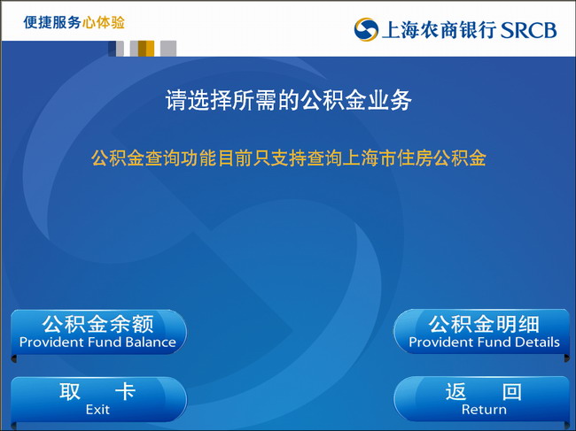 (一) 在自助机具上插入银行卡完成密码验证后进入界面,选择公积金查询。