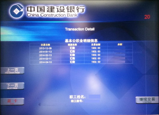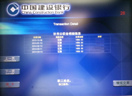 4、点击公积金余额或公积金明细后显示屏幕如下: