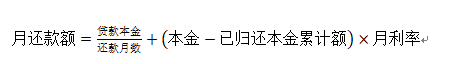 2、按月等额本金还款法:借款人每月偿还的本金固定不变,贷款利息逐月递减的还款方式。