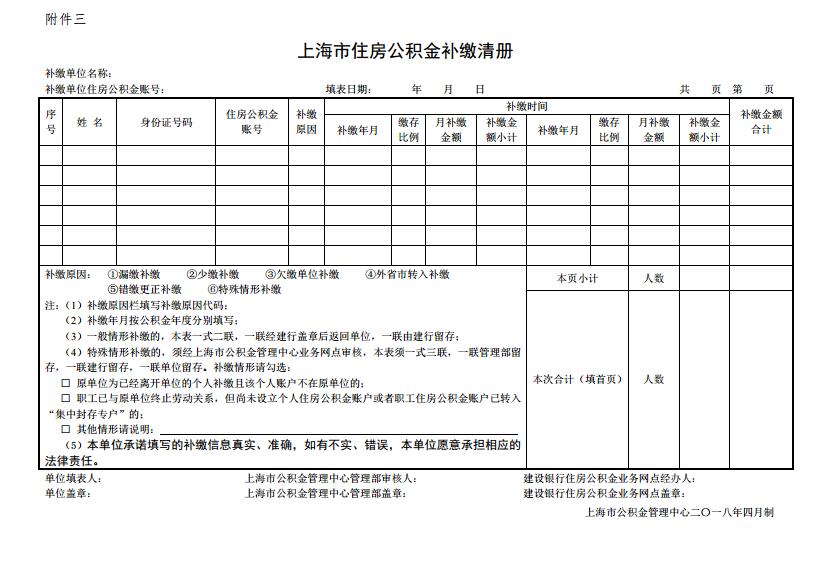 2.填妥并加盖单位公章或者住房公积金业务专用章一式三联的《上海市住房公积金补缴清册》(附件3)。