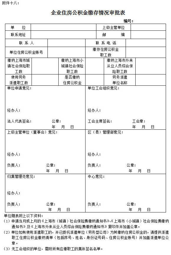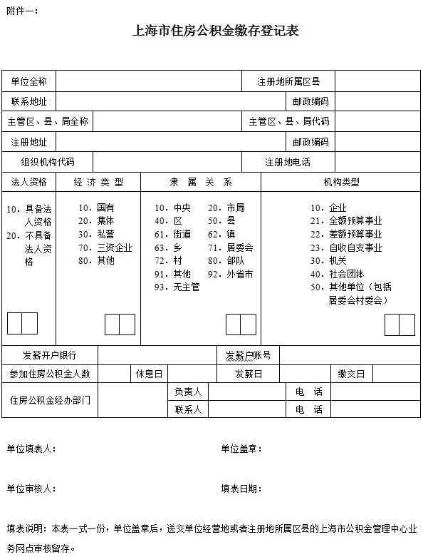 3、填妥并加盖单位公章的《上海市住房公积金缴存登记表》(附件一)。