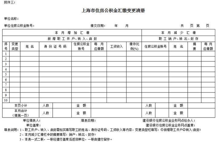 1、汇缴设立账户需提供填妥并加盖单位公章或住房公积金业务专用章一式二联的《上海市住房公积金汇缴变更清册》(附件三);