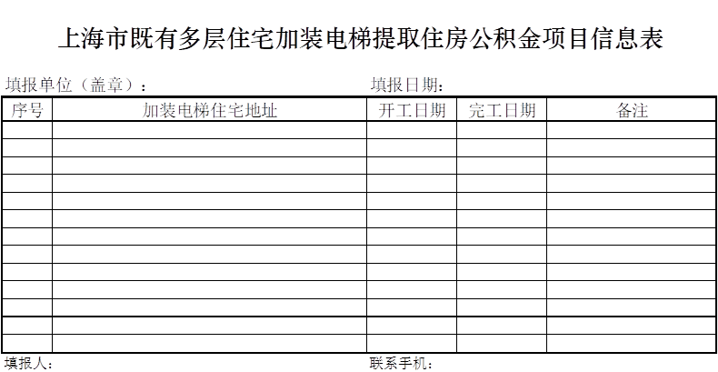 附件:上海市既有多层住宅加装电梯提取住房公积金项目信息表