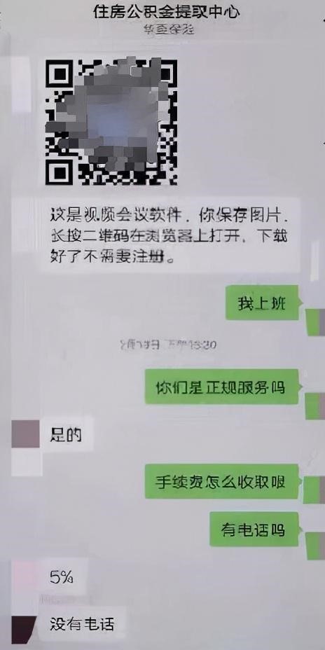 那先生随即扫描广告上的二维码添加了所谓的“住房公积金提取中心”工作人员。在表明来意后,工作人员称可以帮那先生办理提取手续,但要支付5%的手续费。为了打消那先生疑虑,对方还出示了个人的身份证和工作证。