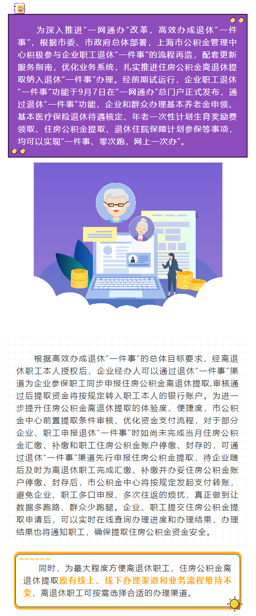 住房公积金离退休提取纳入企业职工退休“一件事”办理