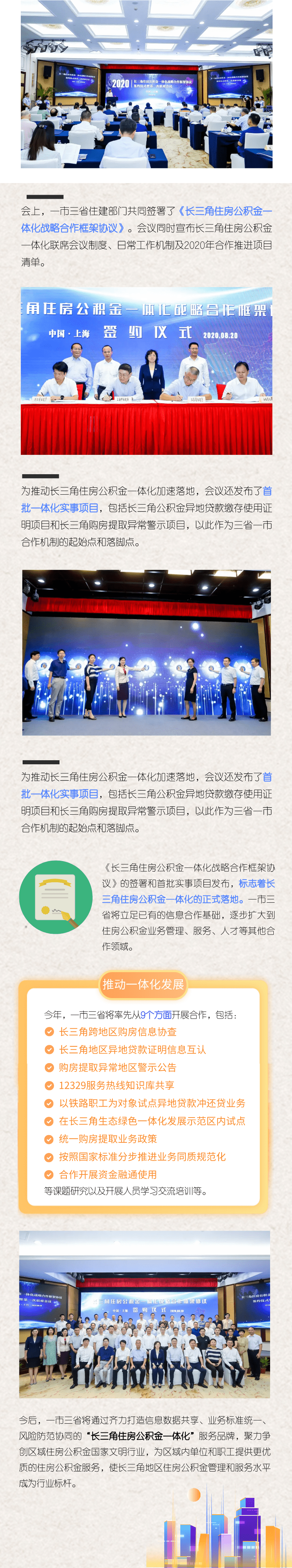 长三角住房公积金一体化战略合作框架协议签约仪式暨第一次联席会议在沪召开