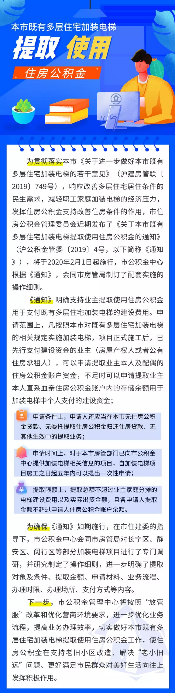 好消息丨2月1日起本市既有多层住宅加装电梯可以提取使用住房公积金