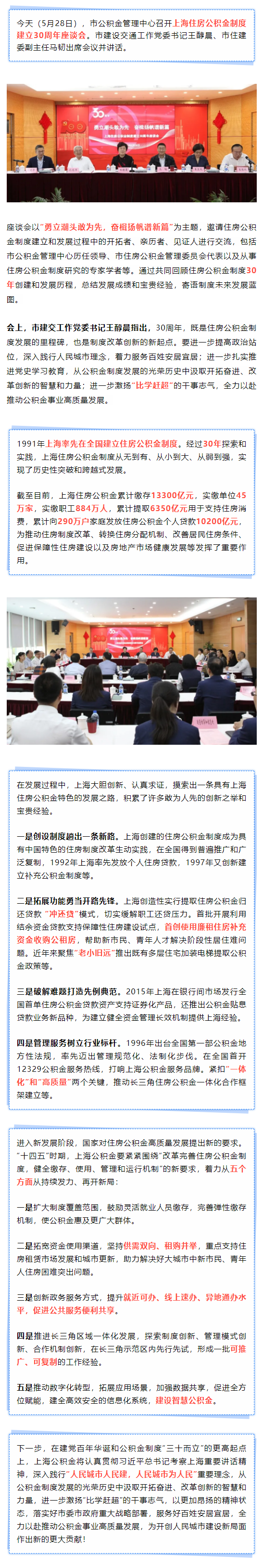 着力服务百姓安居宜居,上海住房公积金制度建立30周年座谈会召开!