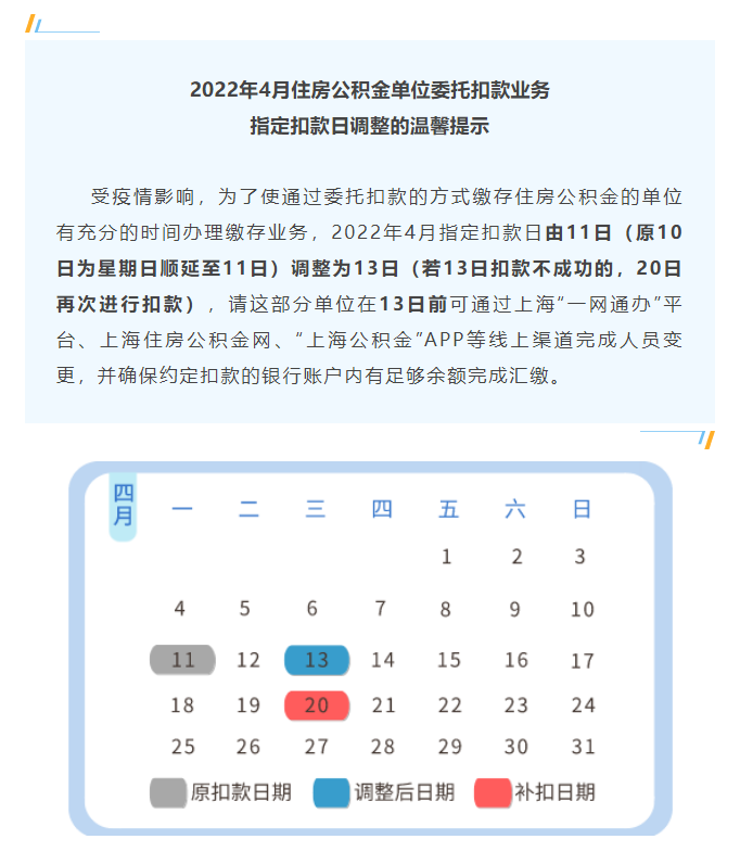 2022年4月住房公积金单位委托扣款业务指定扣款日调整的温馨提示