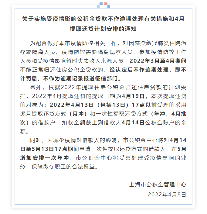 关于实施受疫情影响公积金贷款不作逾期处理有关措施和4月提取还贷计划安排的通知