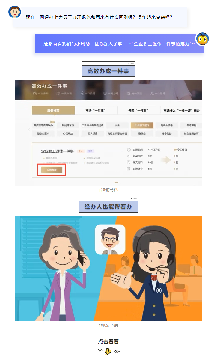 【小剧场】企业职工退休一件事,各项业务办理真方便