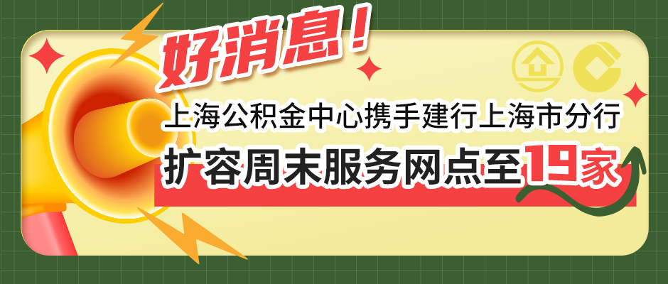 好消息!上海公积金中心携手建行上海分行扩容周末服务网点至19家~