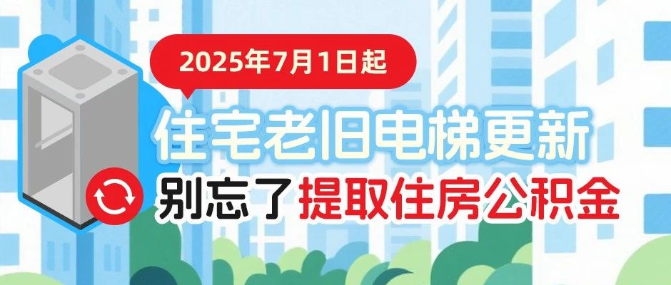 2025年7月1日起,住宅老旧电梯更新别忘了提取住房公积金